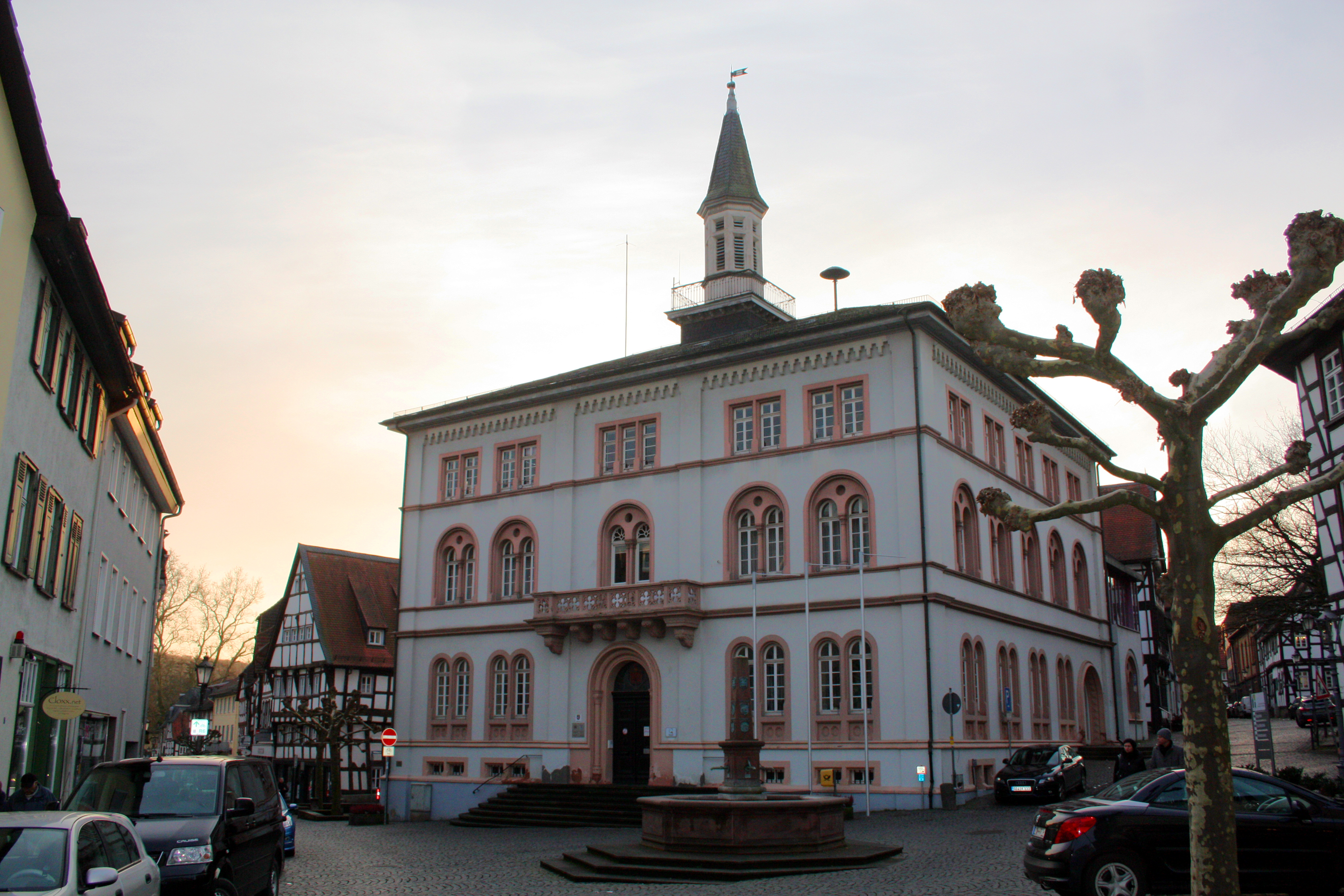 Das Rathaus von Lich mit Stadtbrunnen.