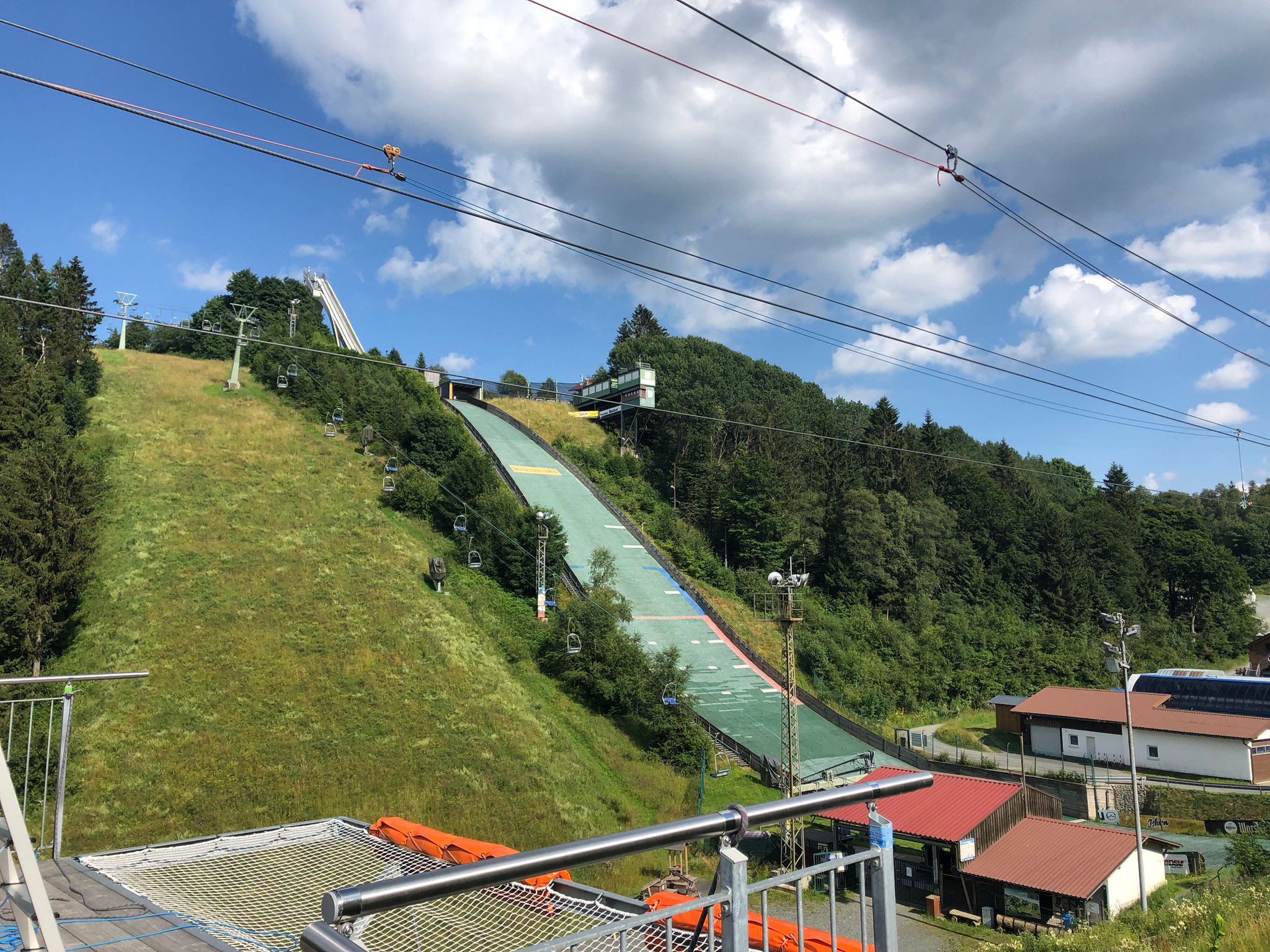 Nach der Fahrt mit der Sky-Fly ZIP-Line in Winterberg an der Talstation.