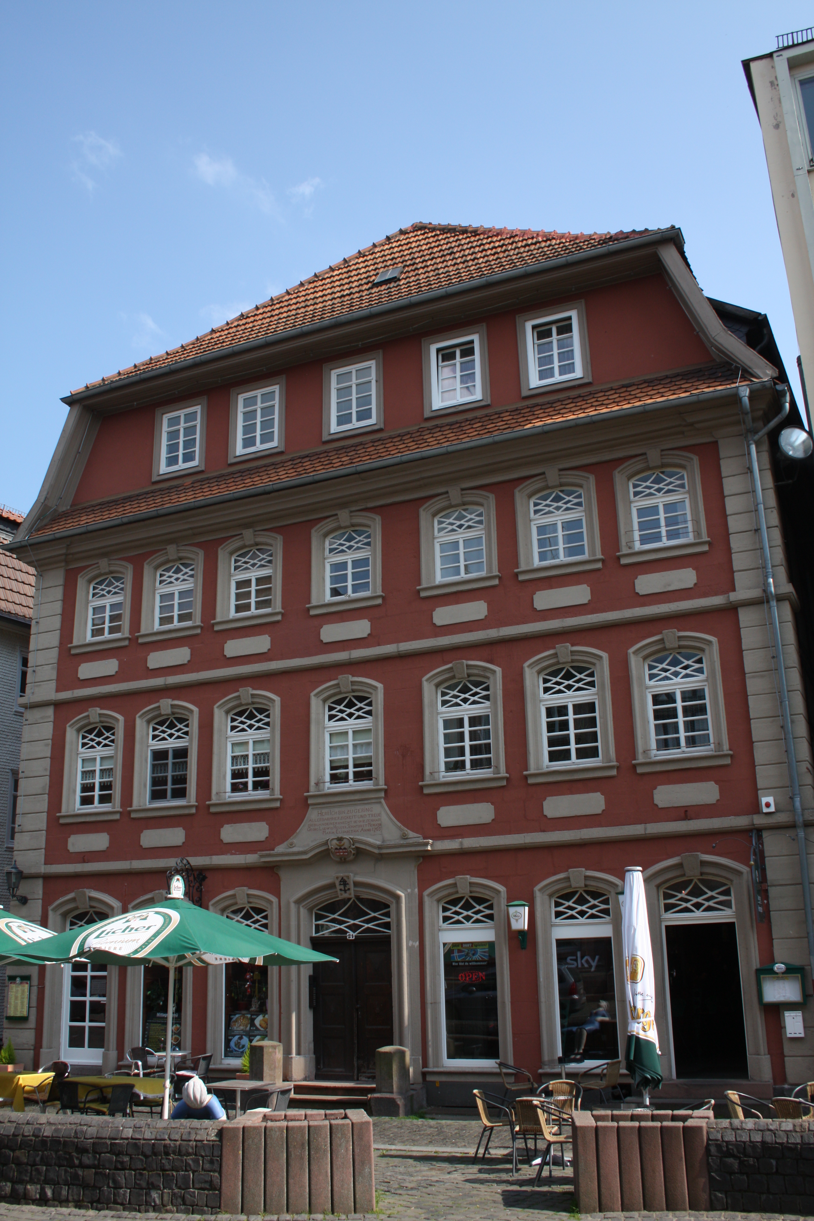 Das 1765-67 erbaute, bürgerlich-barocke Haus ist ein Privathaus des damaligen, vermögenden Kaufmanns, Ratsherrn und mehrmaligen Bürgermeisters Georg Ludwig Heuser. Das Kellergewölbe ist noch aus den Jahre 1580 datiert. Über dem Eingang steht in schmucker Schrift: „HERR ICH BIN ZU GERING - ALLER BARMHERZIGKEIT UND TREUE - DIE DU AN DEINEM KNECHT BEWIESEN HAST - GEORG LUDWIG HEUSER SENATOR ET MERCATOR - MARIA ELISABETHA ANNO 1765".