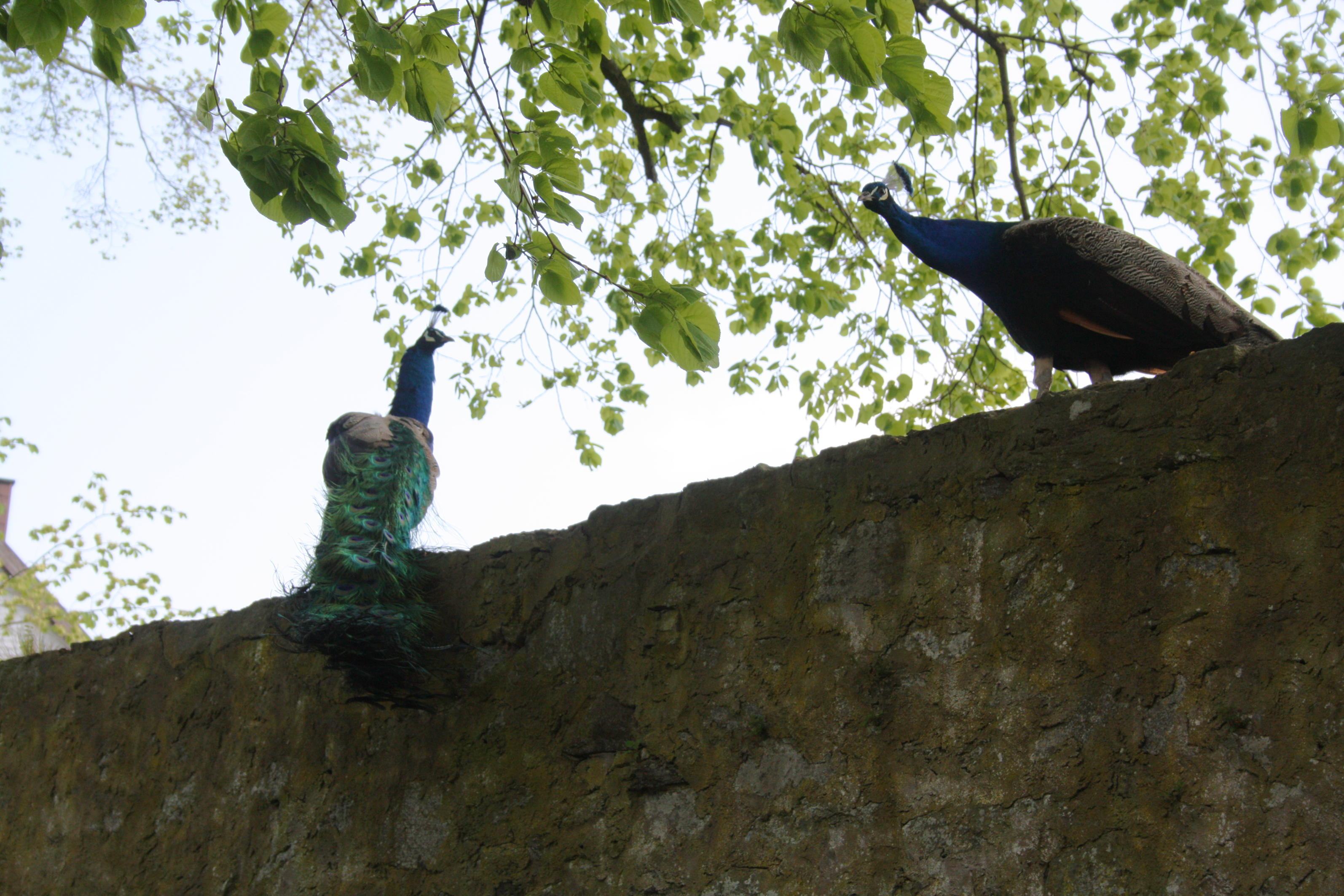 Pfauenpaar auf dem Gelände vom Schloss Eisenbach.