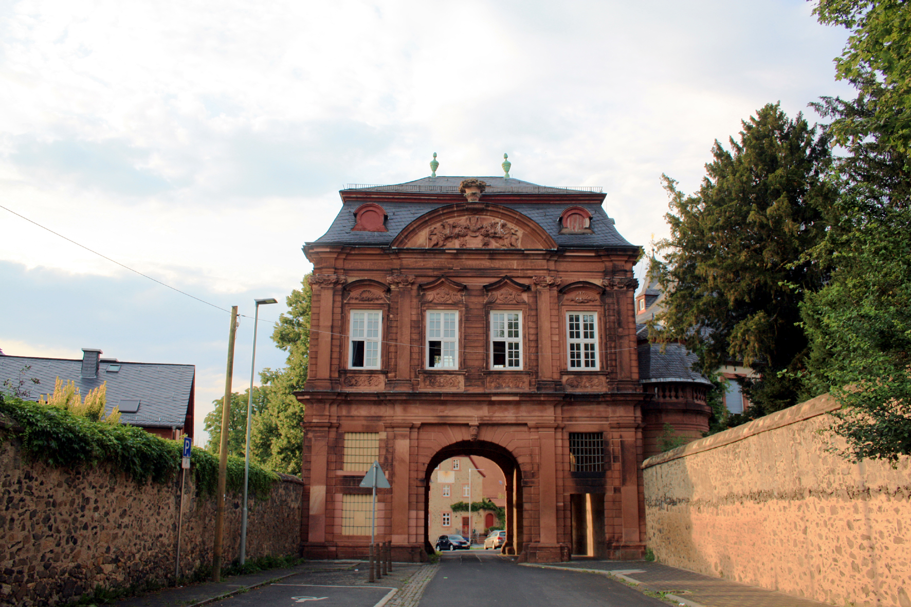 Das Obere Tor, auch Gottfriedsbogen genannt, ist ein zweigeschossiger Bau mit Mansarddach und seitlichem Treppenhaus.