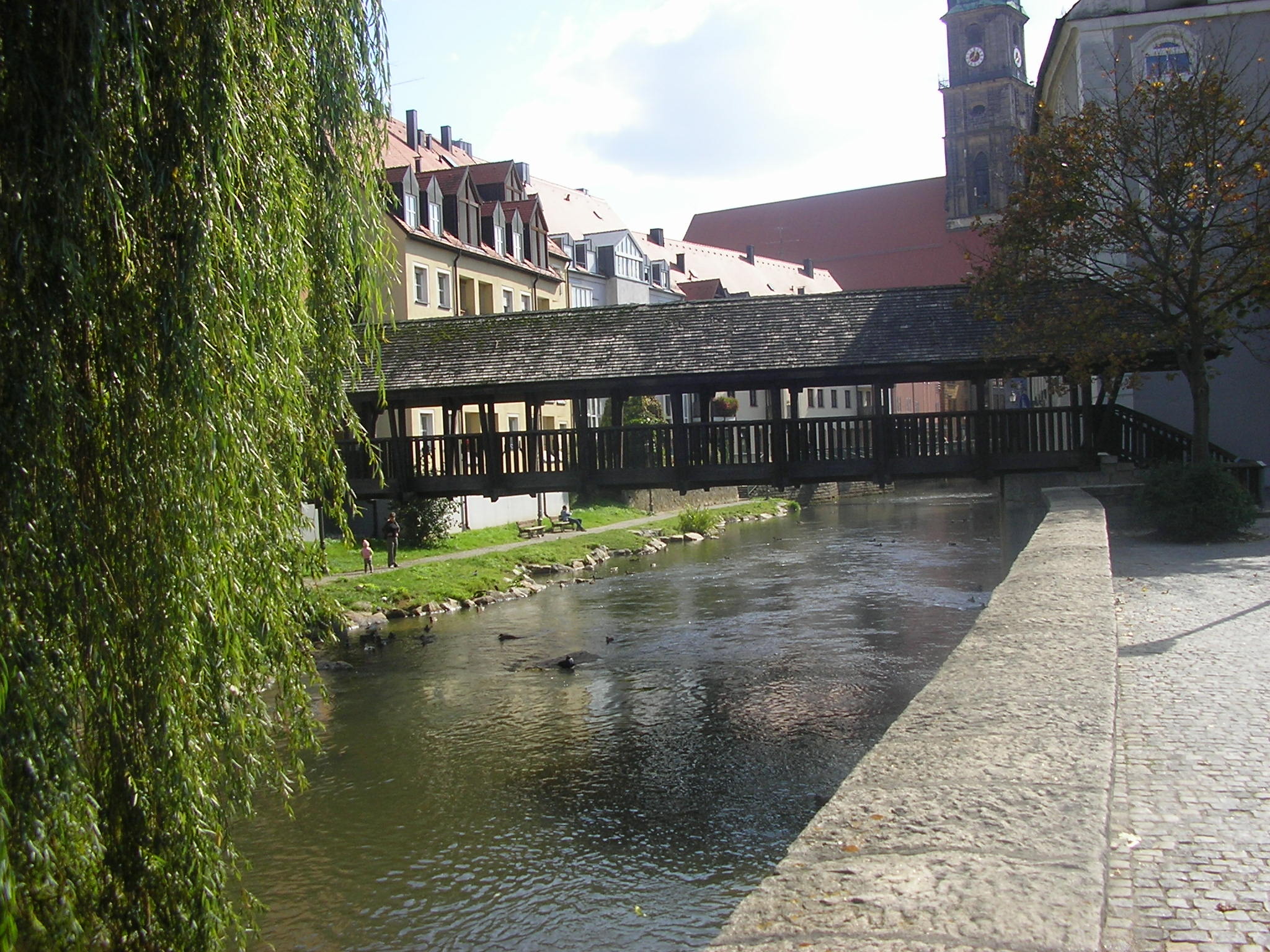Die Vils in Amberg mit Brücke und einem Auschnitt der Altstadt.