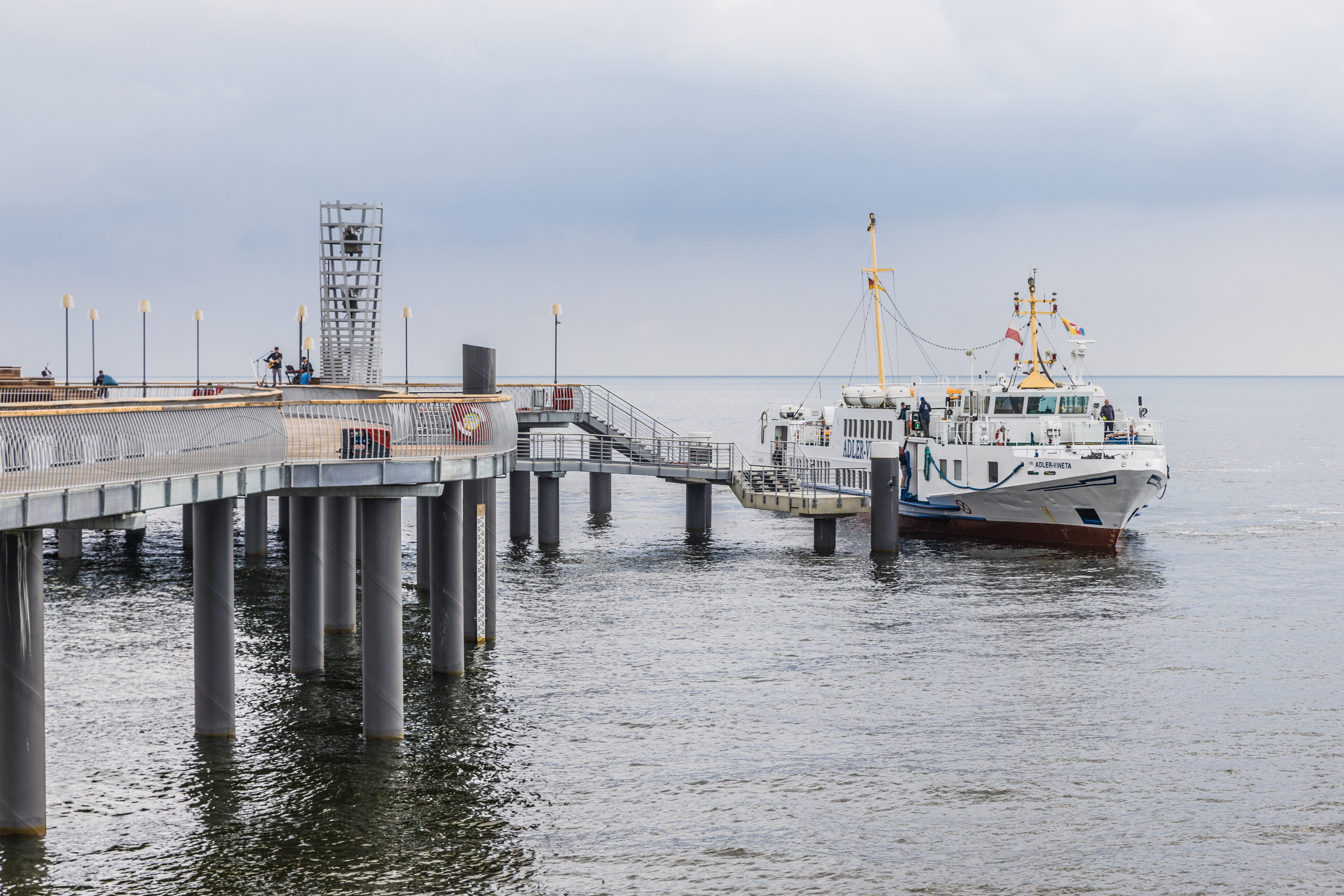 Schiff Adler beim Anlegemanöver, Seebrücke Koserow.