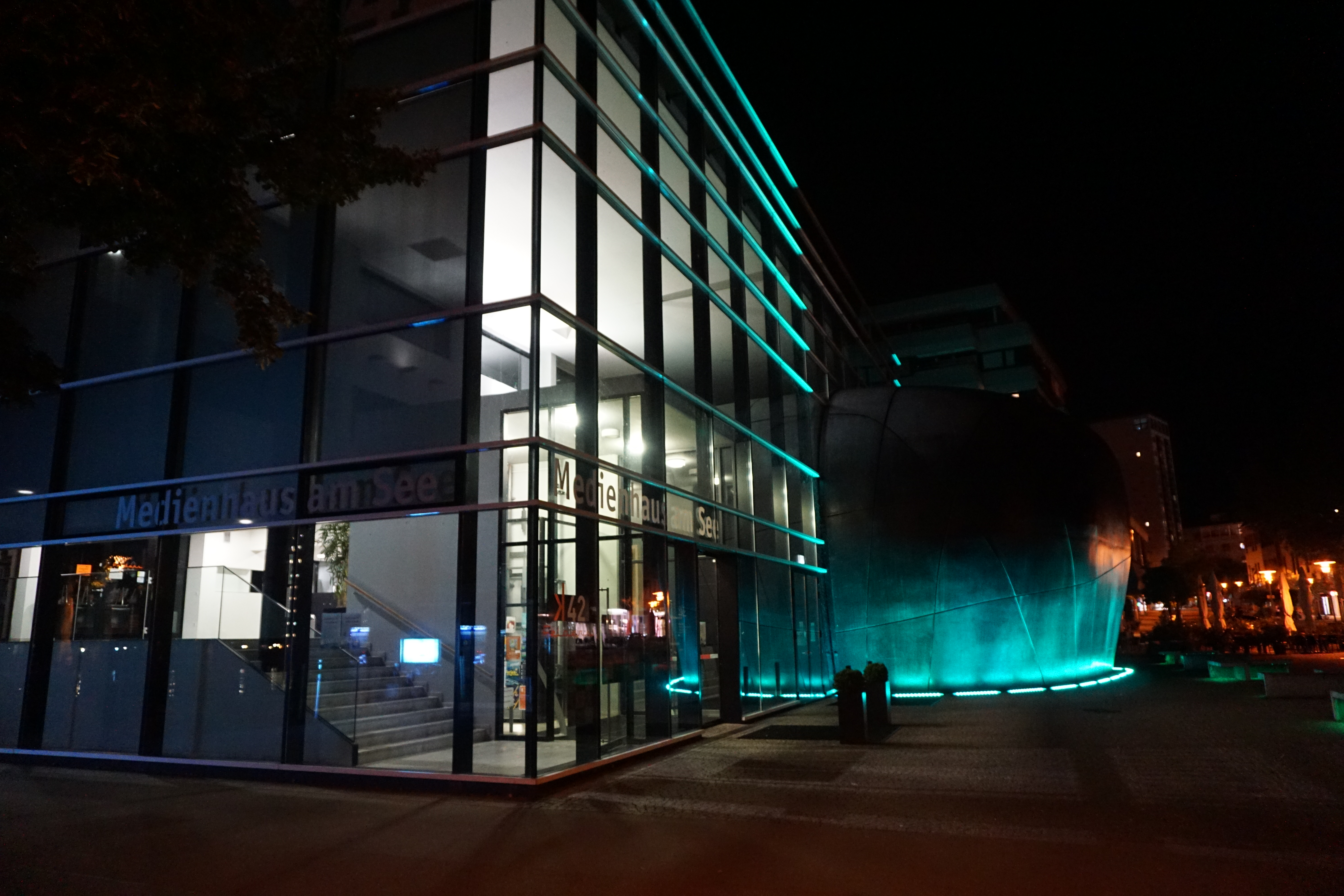 Medienhaus bei Nacht, Friedrichshafen.