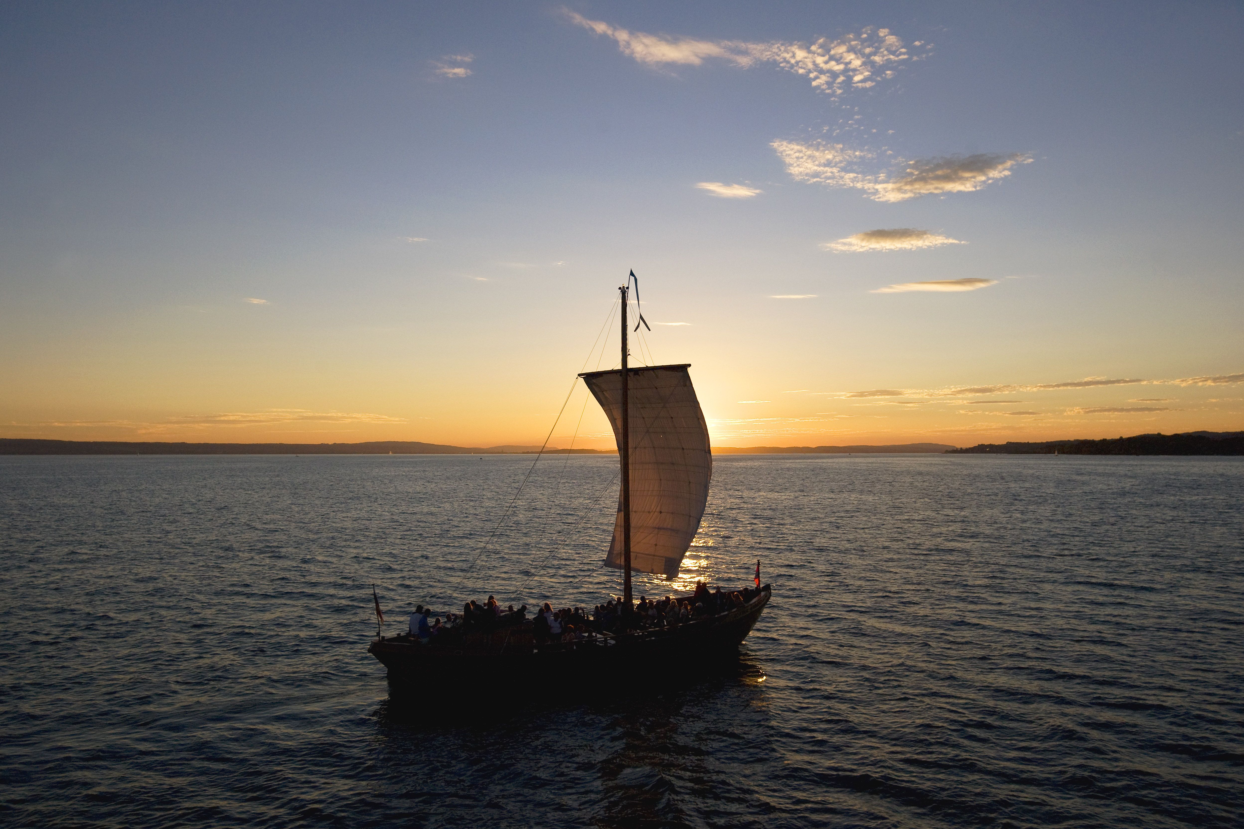 Das historische Lastensegelschiff Lädine in der Abendsonne (Sonnenuntergangsfahrten).