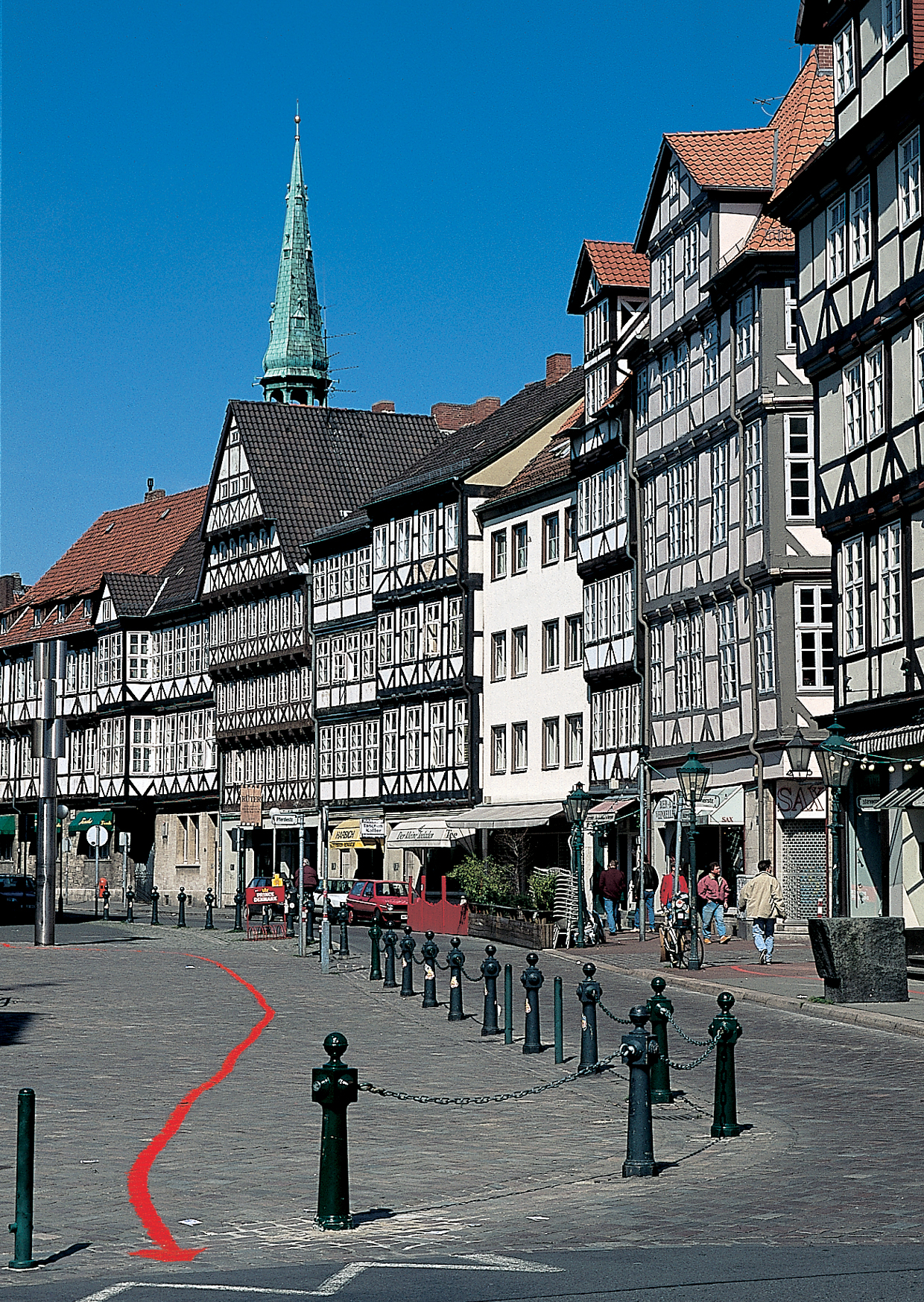 Auf einer Länge von 4.200 Metern ist in der Stadt Hannover eine rote Linie auf das Straßenpflaster gemalt, die zu 36 Sehenswürdigkeiten in der Innenstadt führt.