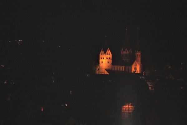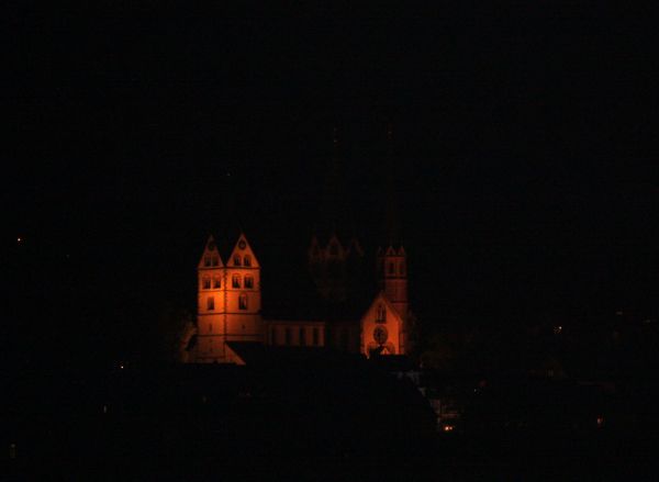 Marienkirche Gelnhausen bei Nacht.