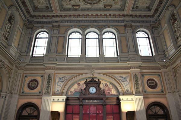 Das helle Sandsteingebäude erhielt wieder ein Fürstenzimmer, dieses Mal in dem westlichen Pavillon. Es ist reich verziert mit geschwungenen Dächern, Bogenfenstern, Säulen und Schmuck. Die alte Empfangshalle besitzt Wandmalereien und einen hölzernen Fahrkartenschalter.